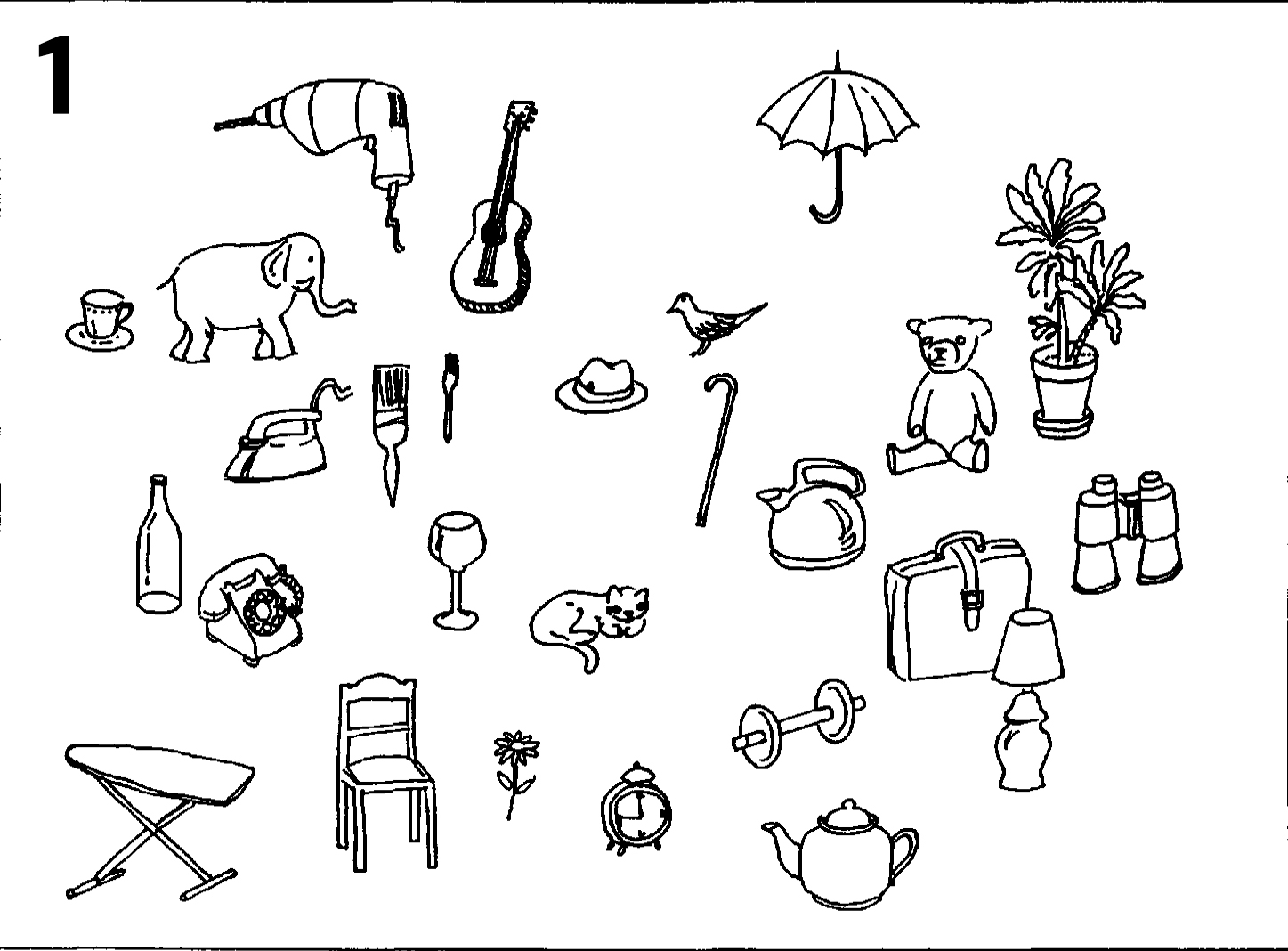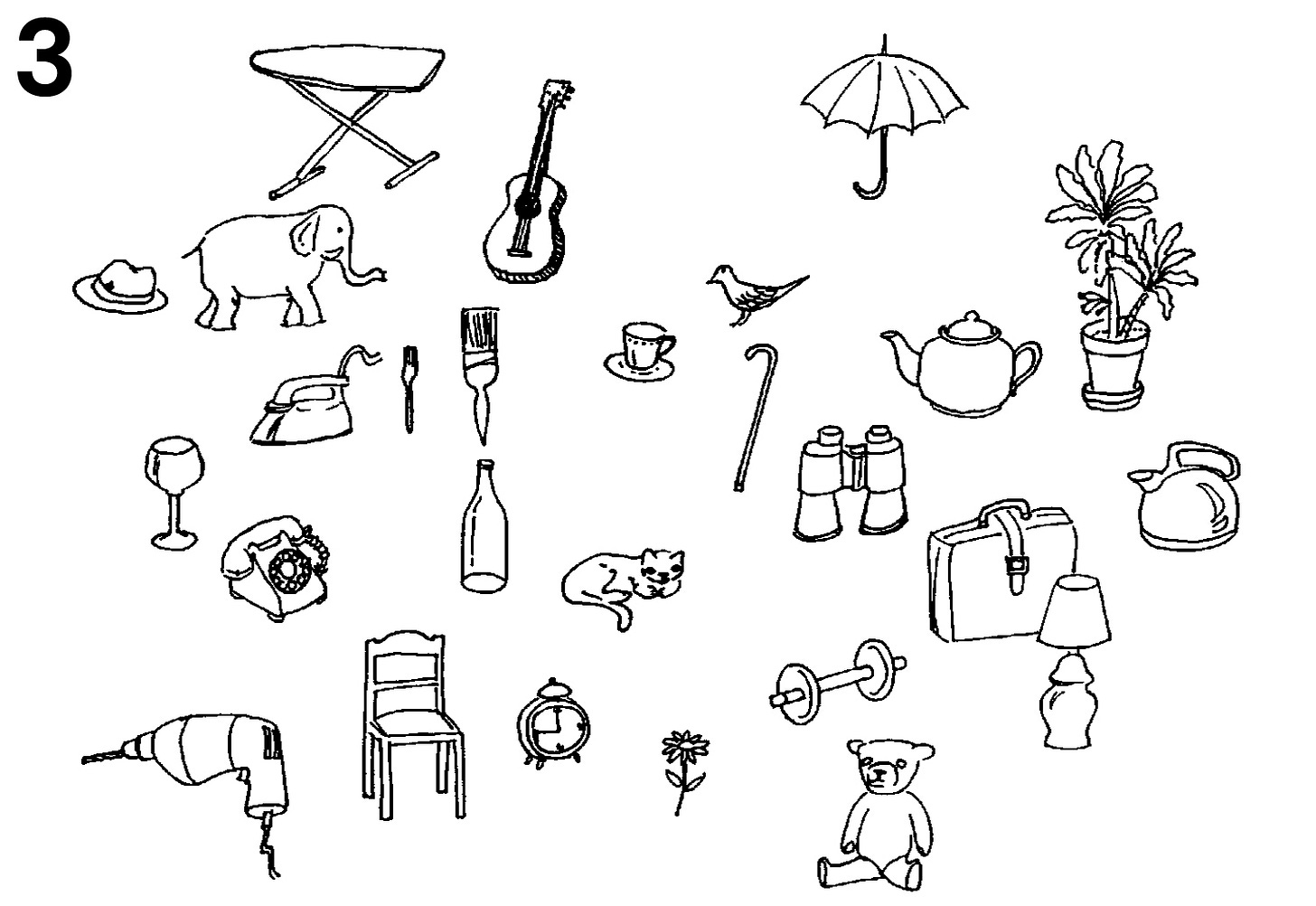 Flip over Page 3 and for one minute, circle the objects that were in the same place as Page 1, and put a cross through those that have been moved.
